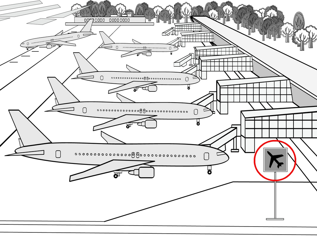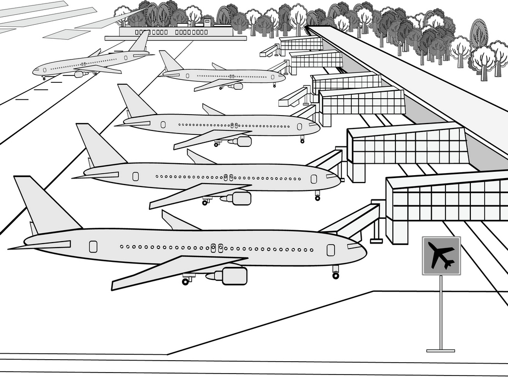 Не смотря на то что это рисунок, а нарисованные самолёты не летают, вообразите, что это настоящий аэродром, с настоящими самолётами и всей инфраструктурой.