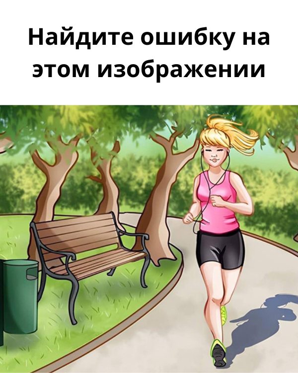 Возвращаемся к нашему интригующему изображению. Женщина бегает по парку. Атмосфера спокойная, всё на месте… но есть одна деталь, которая не сходится.